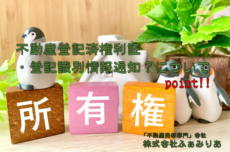 不動産売却(所有権移転)の際に司法書士が必要となる大事な書類となります。登記済権利証・登記識別情報通知を紛失してお手元にないからと言って所有者じゃなくなると言うわけではございませんが、紛失されておりますと、不動産売却の際、相続の際、不動産を担保にお借入れをされる場合など、司法書士の方で登記済権利証・登記識別情報通知に代わる書類を作成しなければなりません。その際は、司法書士への費用が発生していますので、早い段階で書類のご確認をされる事をおすすめいたします。(費用に関しまいては、司法書士の先生により異なります。)