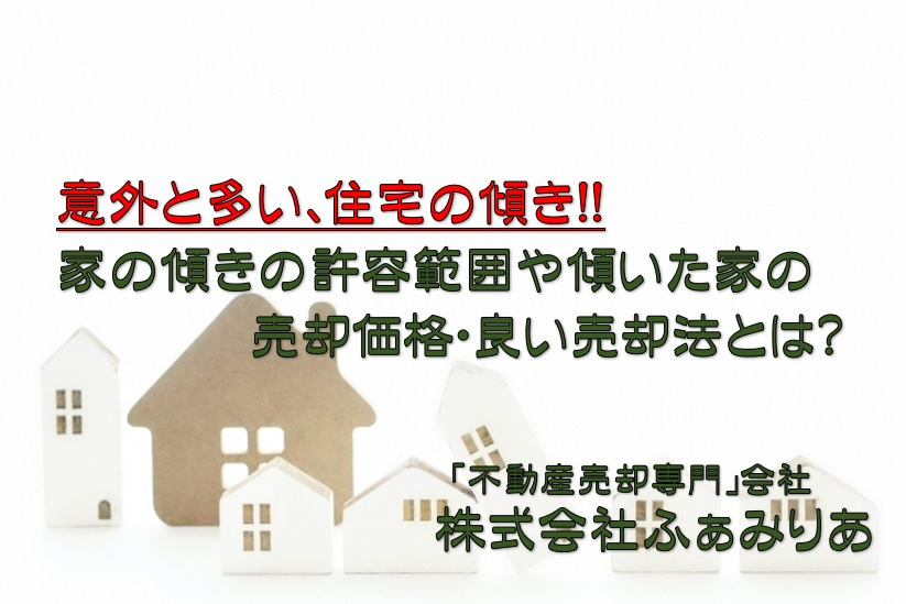 傾いた家は売却価格が下がってしまいますが、リスクが高い物件と言う見方もされる為現状のまま、不動産会社に直接買取ってもらうと言う方法もおススメです。現状のままでも買い取ってもらえる可能性も十分ございます。