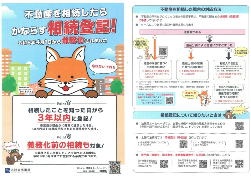 下記が法務省にて公表されている「相続登記」に関するパンフレットになります。